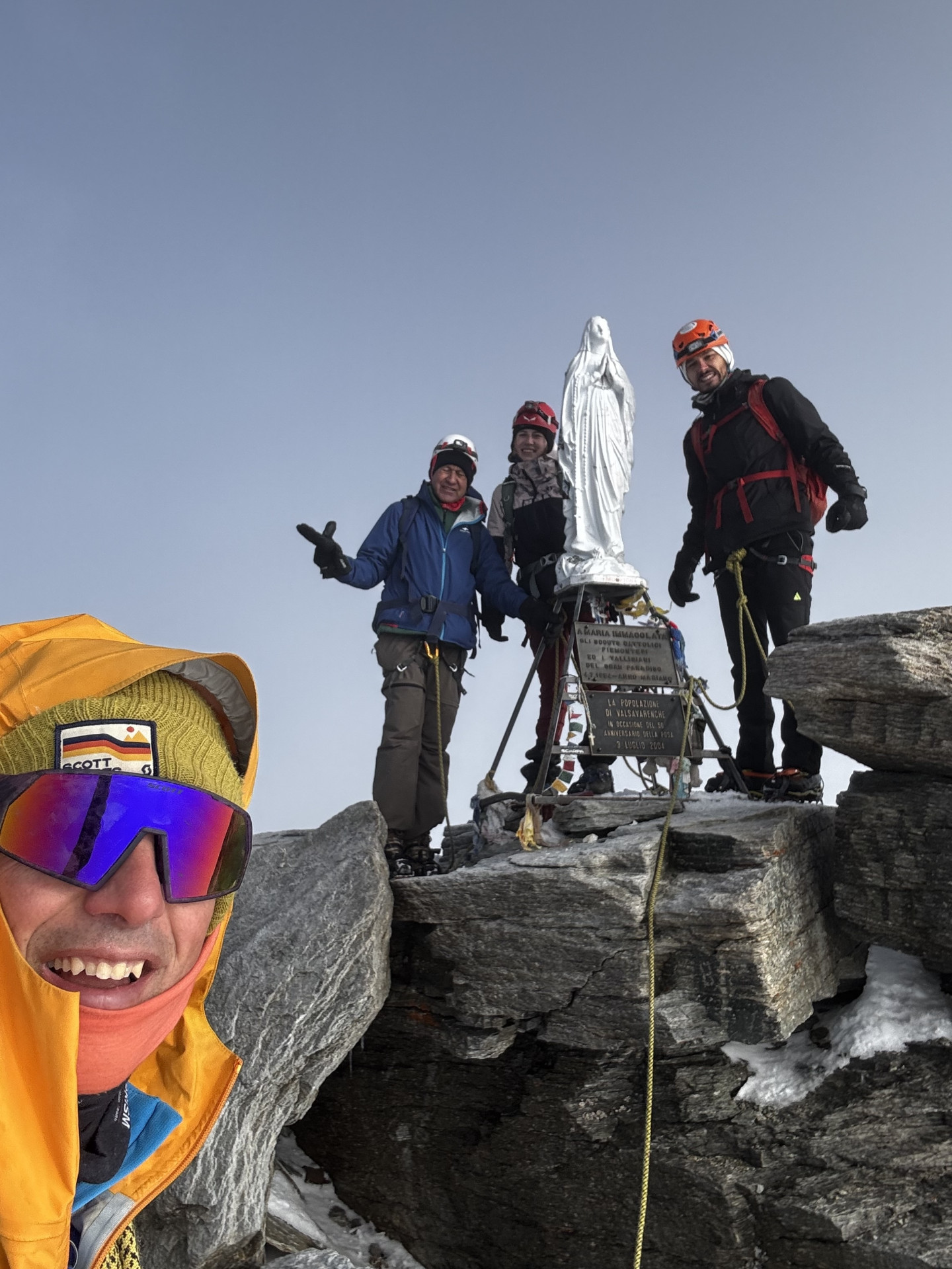 L’ultimo tratto, più esposto e roccioso, conduce alla cima vera e propria, dove si trova la celebre Madonnina, simbolo del Gran Paradiso e punto panoramico privilegiato su tutto l’arco alpino.