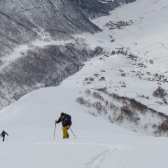 Un viaggio straordinario nel cuore dell’Alto Svaneti, tra le montagne più spettacolari del Caucaso. Dal dinamismo di Kutaisi all’atmosfera autentica di Mestia e fino ai remoti villaggi di Ushguli, questo itinerario unisce sci alpinismo, cultura locale e panorami maestosi. Ogni giorno offre un obiettivo diverso: dalle prime discese di riscaldamento a Tetnuldi alle salite verso laghi alpini, ghiacciai e cime panoramiche, sempre immersi in un ambiente incontaminato. Le antiche torri della regione, l’ospitalità delle guest house e le viste impressionanti sullo Shkhara accompagneranno un’avventura pensata per chi ama la montagna nella sua forma più autentica. Un’esperienza intensa e varia, che culmina con il rientro dopo otto giorni di esplorazione e neve.